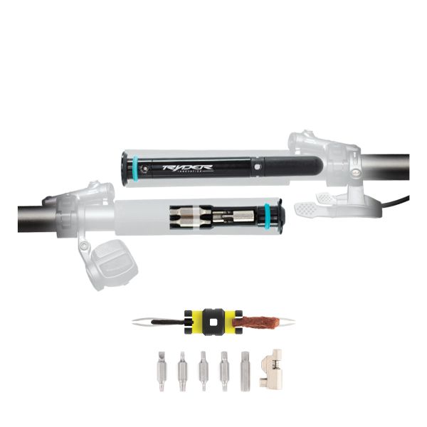 Ryder Innovation Groove In-Bar ToolThe In-Bar Groovetool features a chain tool, Slugplug Dual and a wide selection of common most-used tools on modern bicycles. Designed to store inside your handlebars, and doubles up as bar plugs.