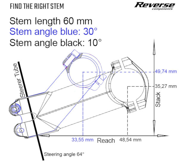 Thanks to the flip-flop system, it is also possible to mount the stem with both, a positive or negative angle.