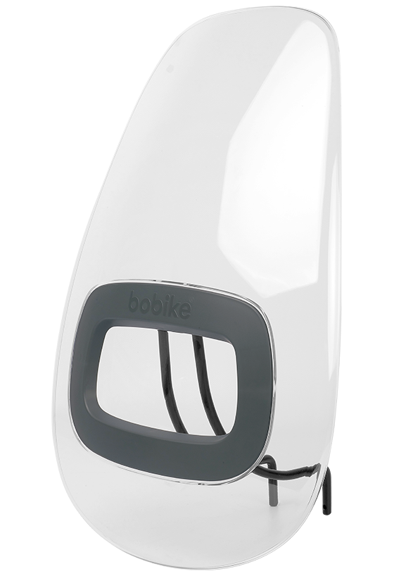 The Bobike GO windscreen is made out of a sturdy, shock proof and fully transparent material. Its eye catching design shape and color accent matches perfectly with your Bobike GO mini safety seat. The screen is installed and removed in no time at all. You mount the Bobike GO windscreen directly on the mounting bracket of your Bobike mini seat. The windscreen can also be used in combination with the Bobike A-head adapter.