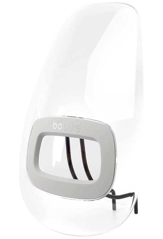 The Bobike GO windscreen is made out of a sturdy, shock proof and fully transparent material. Its eye catching design shape and color accent matches perfectly with your Bobike GO mini safety seat. The screen is installed and removed in no time at all. You mount the Bobike GO windscreen directly on the mounting bracket of your Bobike mini seat. The windscreen can also be used in combination with the Bobike A-head adapter.