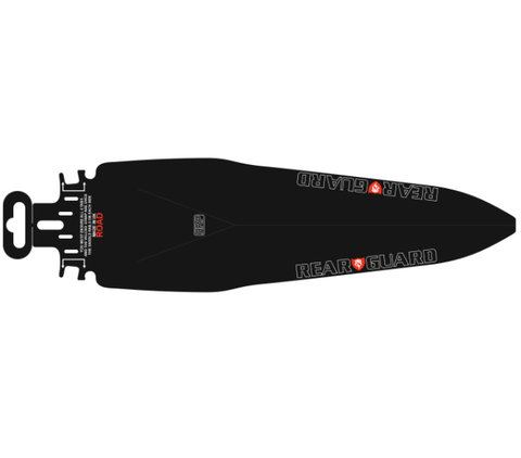Rear Guard Road RapidRacerProducts - Simply the best last minute rear mudguard to keep your rear clear. The RearGuard is simply a 'game changer' in the last minute fast fitting REAR mudguard field, nothing is as secure. It attaches underneath the saddle with a hook and loop strap and takes less than 20 seconds to fit. Weight: 23g